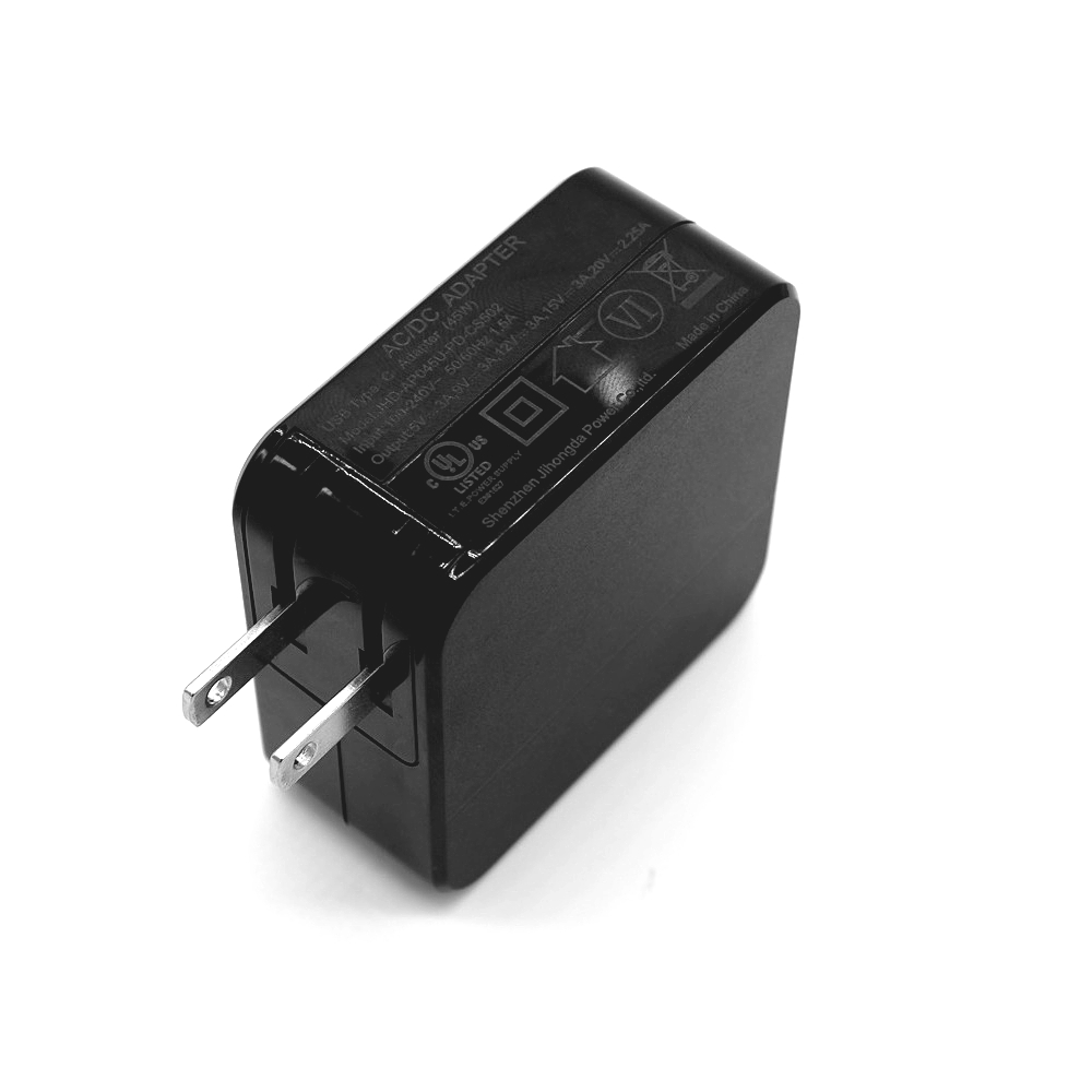 产品描述:美规UL,FCC认证45W TYPE C PD充电器,USB-C快速充电器,45W PD快充Type-C充电器。